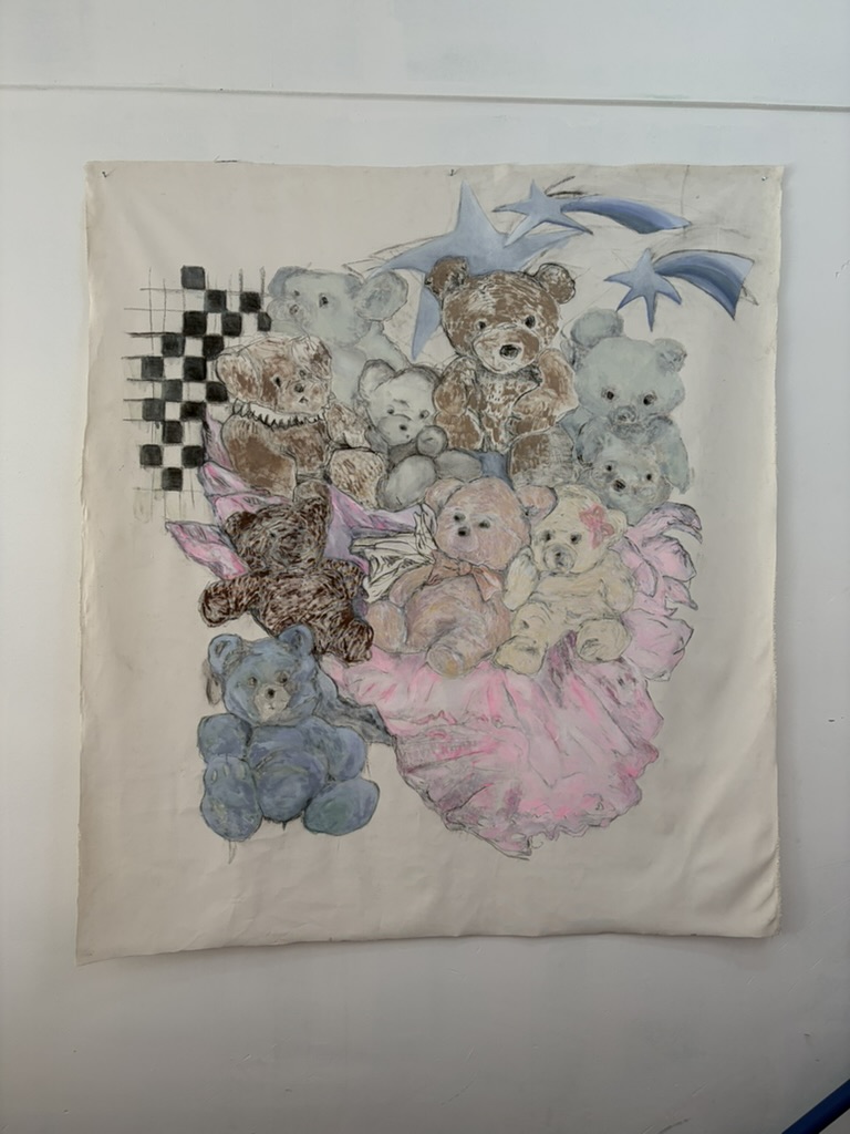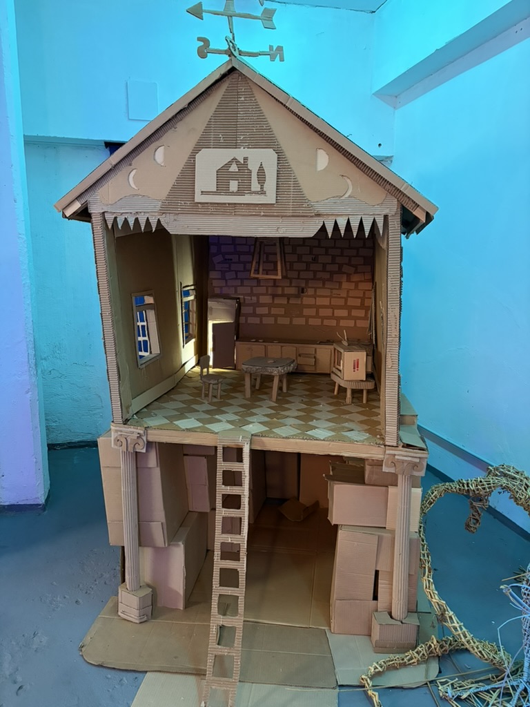 parece que me gusta mas jugar con los materiales que usarlos para lo que fueron hechos, y en el baño del taller vi una araña con bebés.