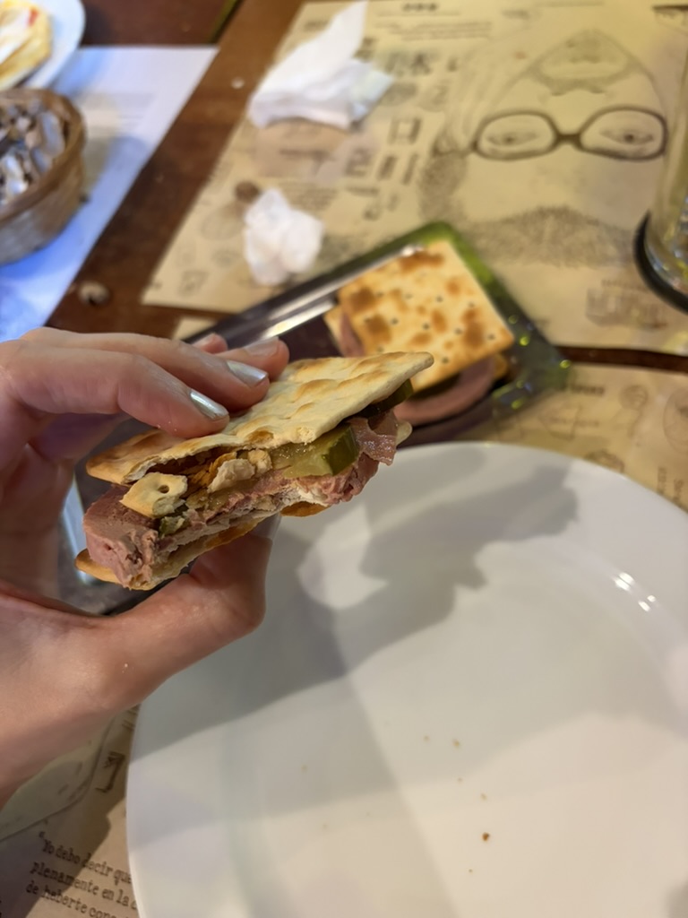 fui con juani al moderno y al kiosko de artistas, después merendamos con flora en el hipopótamo, me gustaron las traviata con leber y pepinillo.